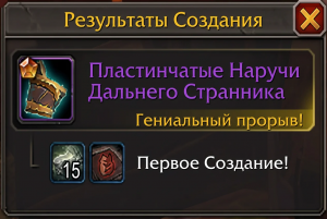 Эти характеристики при активации будут отображаться на панели результатов создания предметов, как показано ниже: