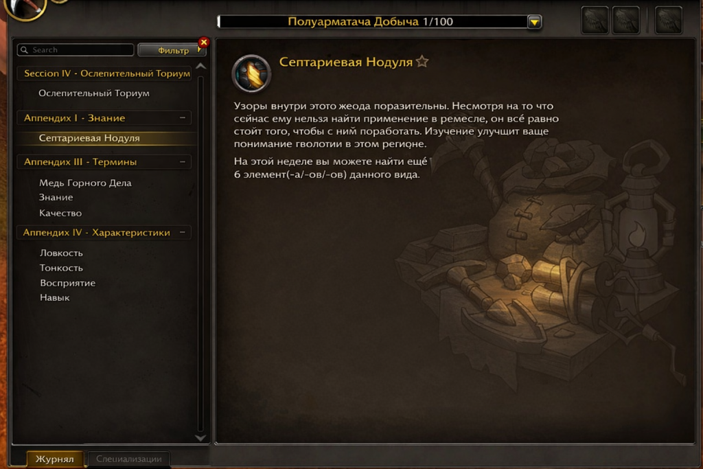 Концентрация — это основной способ получения предметов высшего качества при использовании дешевых материалов или в случаях, когда вы еще не полностью экипированы, не изучили все специализации или не используете материалы максимального ранга для конкретного предмета.