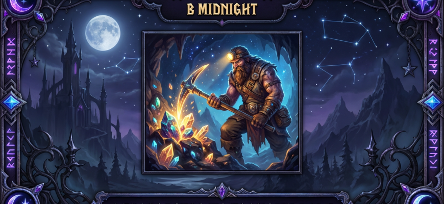 На этой странице описаны наиболее важные аспекты горного дела в дополнении Midnight, включая варианты распределения талантов и советы по заработку золота