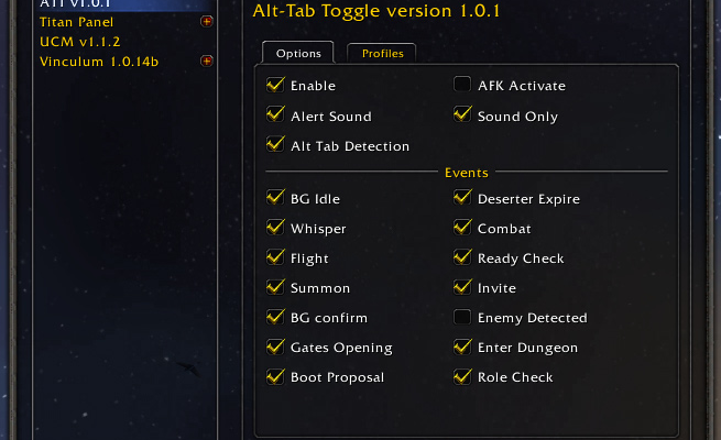 Аддон Alt-Tab Toggle (ATT) [WotLK 3.3.5] — это аддон для WoW, который автоматически возвращает окно игры на передний план при определённых событиях, даже